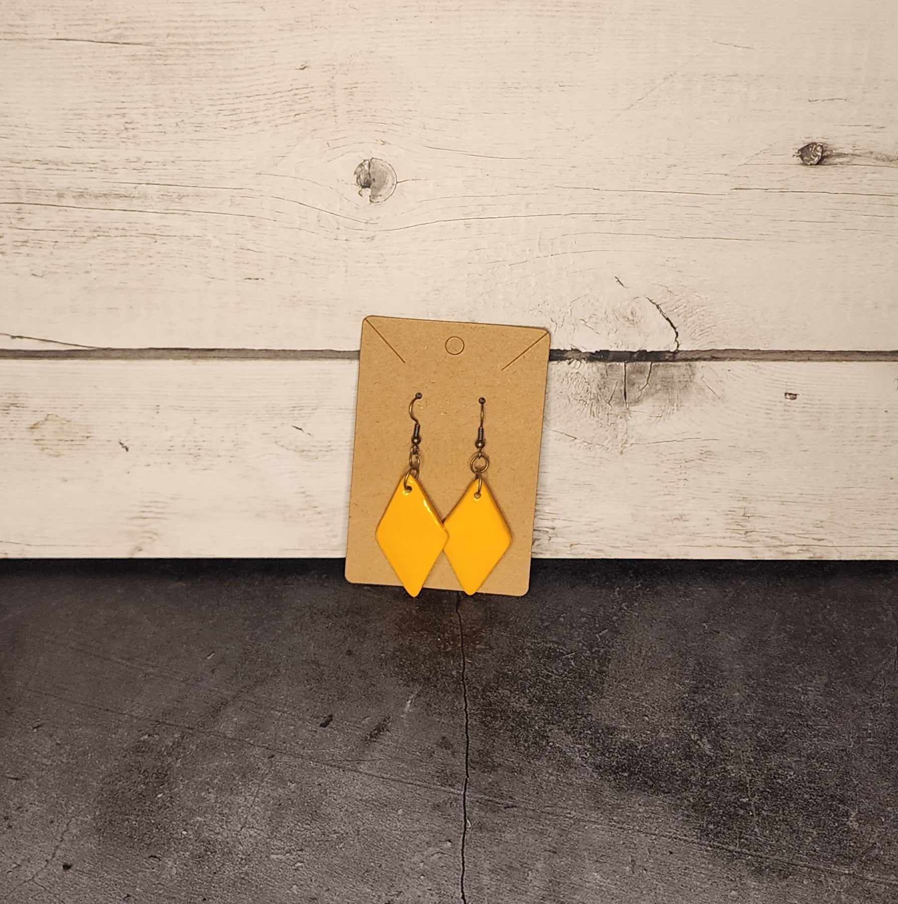 Make a bold statement with our Earrings- Orange Diamond. Handcrafted from scratch clay, these diamond shaped earrings will add some playful flair to any outfit. Made in a stunning orange hue, they're sure to turn heads and bring a pop of color to your look.